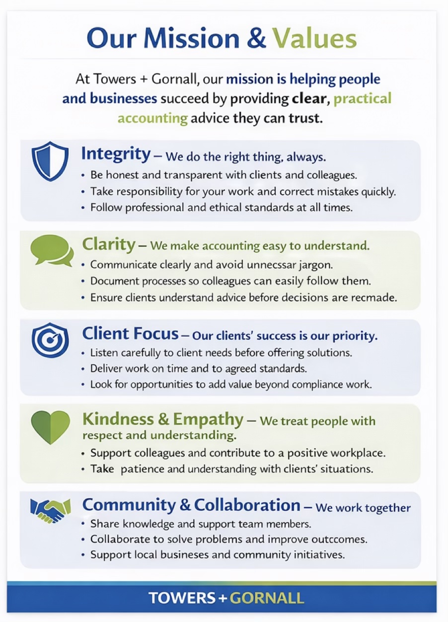 To provide trusted, valued financial and business advice that helps to create healthy, sustainable futures for our clients and colleagues. To create an environment where businesses and people flourish.